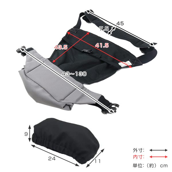 | サイズ | 本体:約 縦43.5×横41.5(cm) ウェストベルト:約43〜130(cm) ショルダーベルト:約37〜120(cm) ポケッタブルサイズ:約 縦11×横24(cm) |