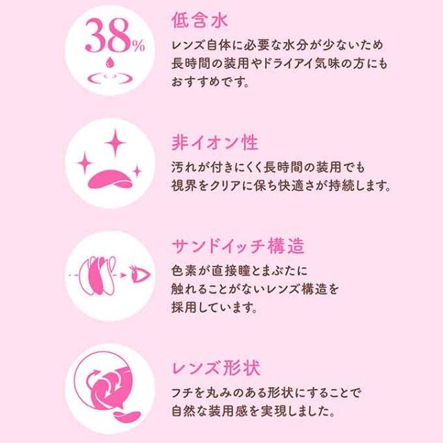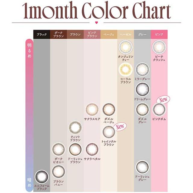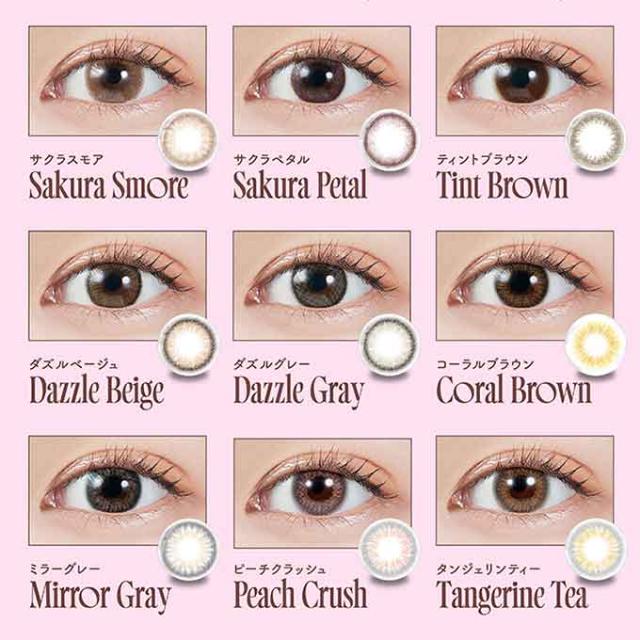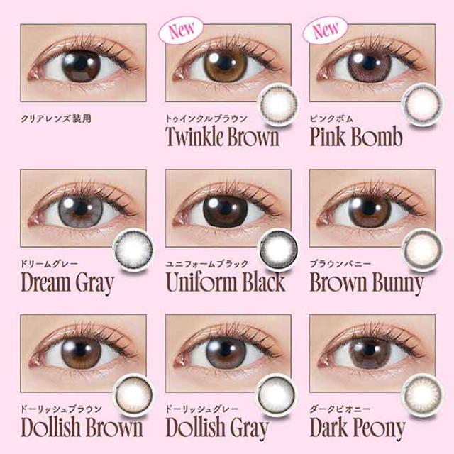 サクラスモア,ダークピオニー,ドーリッシュブラウン,ドーリッシュグレー,ブラウンバニー,ドリームグレー,ユニフォームブラック,トゥインクルブラウン,ピンクボム ■装用期間:1か月