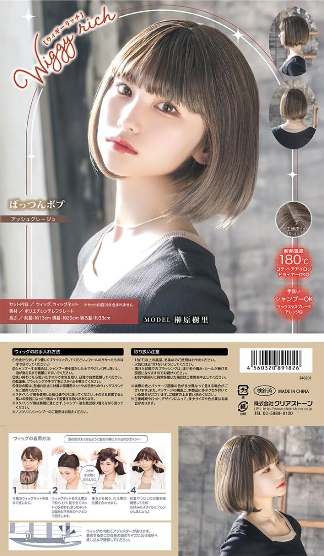 WIGGY RICH ぱっつんボブ アッシュグレージュ ウィッグ 女性 女子 仮装 コスプレ クリアストーン 4560320891826
