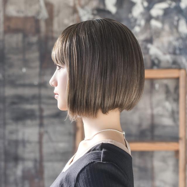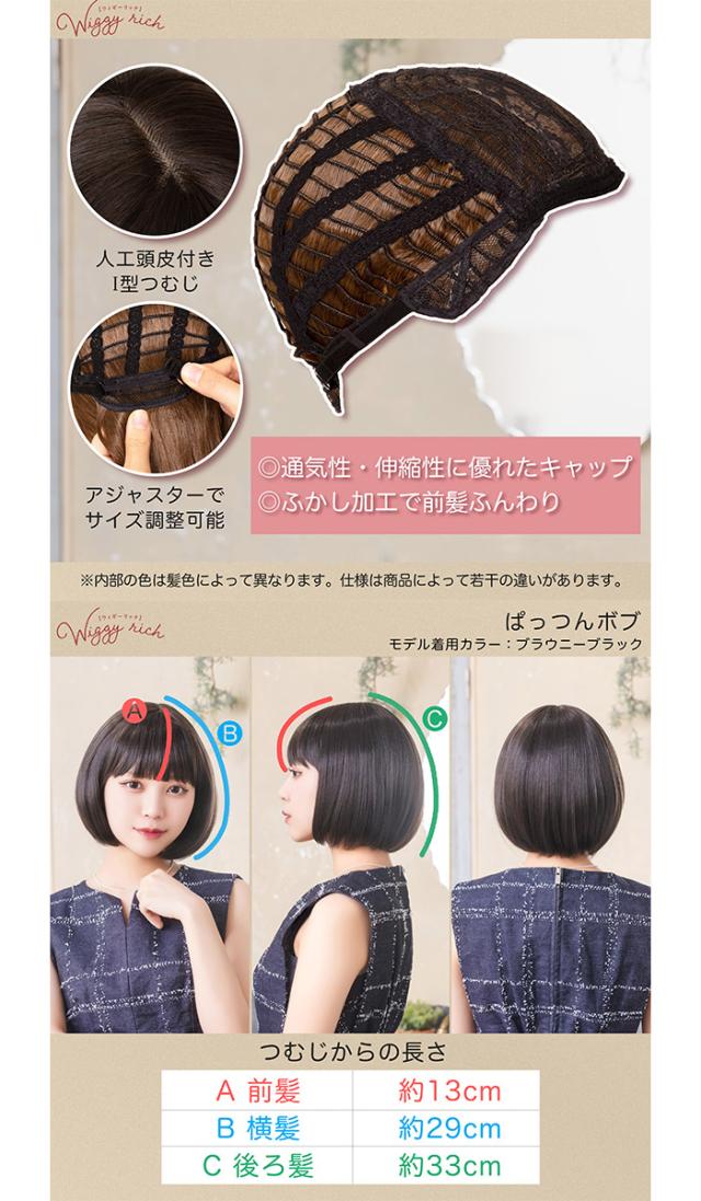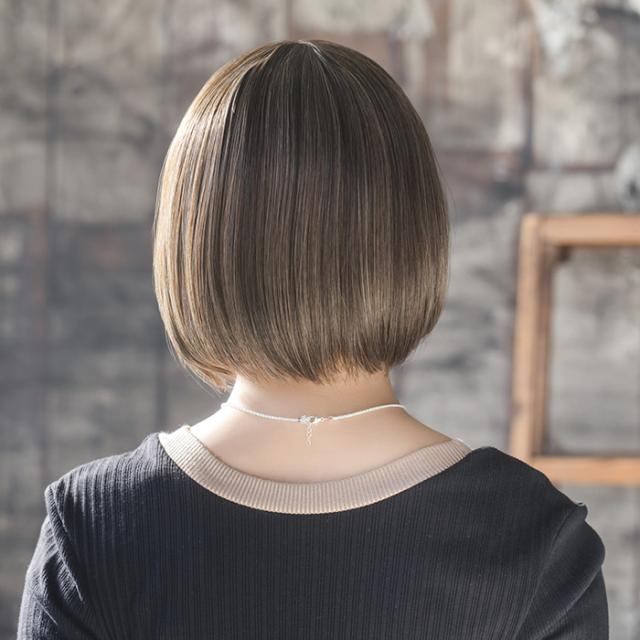 ファッションウィッグのウィギーリッチシリーズ。人工頭皮付きのI型つむじでウィッグ感の少ない、自然なスタイル。前髪にサイドの毛があるので、耳にかけてもナチュラルです。コテ・ヘアアイロンOK(耐熱温度180℃)。ウィッグ内側にアジャスターがある為、サイズ調節可能。デイリーにもコスプレにも合わせやすいヘアデザインです。ぱっつん前髪の個性派ショートボブスタイル。クールなアッシュグレーに、柔らかいベージュが入ったカラー。