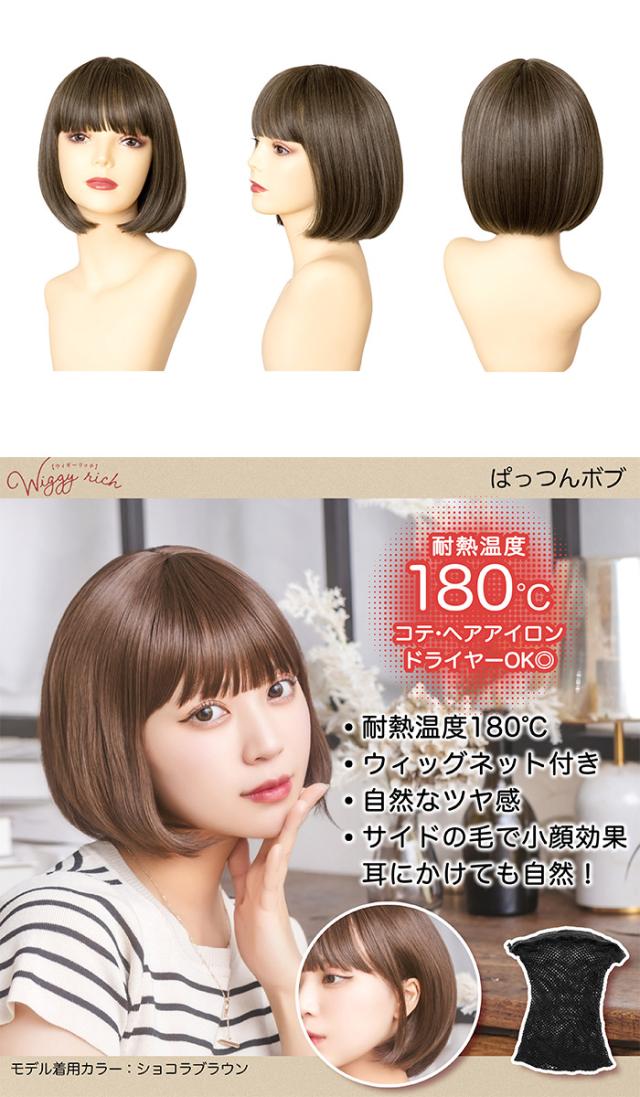 ■商品名:WIGGY RICH ぱっつんボブ アッシュグレージュ ウィッグ 女性 女子 仮装 コスプレ