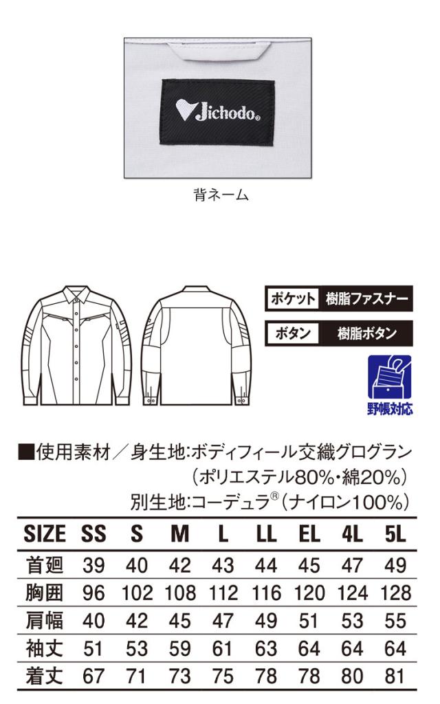 作業服 自重堂 ストレッチ長袖シャツ 87304春夏 大きいサイズ5L