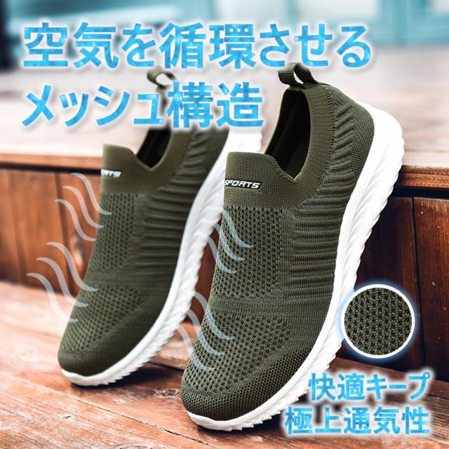 【通気性】靴の表にはニットのデザインを採用しており、通気性がよく、蒸れ感もなくて、ランニングや散歩中に自由に呼吸するようにしています。