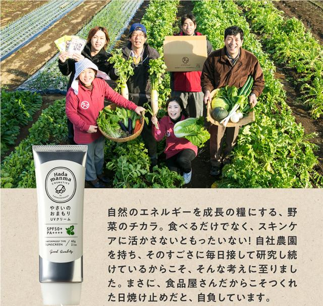 Hadamanma やさいのおまもりUVクリーム 60g 2個セット ウォータープルーフ(上半期ベストコスメ受賞)お肌に優しい日焼け止め SPF50+