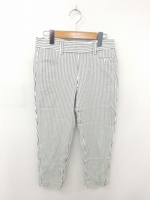 【中古】スピック&スパン ノーブル パンツ テーパード ストライプ ジップフライ 薄手 36 白 黒 ホワイト ブラック