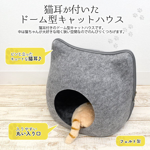 猫用ベッド ドーム型 キャットハウス 猫耳付き 前後 セパレート 猫用 ベッド 2WAY かわいい ドーム型ベッド 子猫 ネコちゃん 隠れ家 寝床 フェルト オシャレ カフェ風 キュート ねこあつめ お昼寝 setpet01