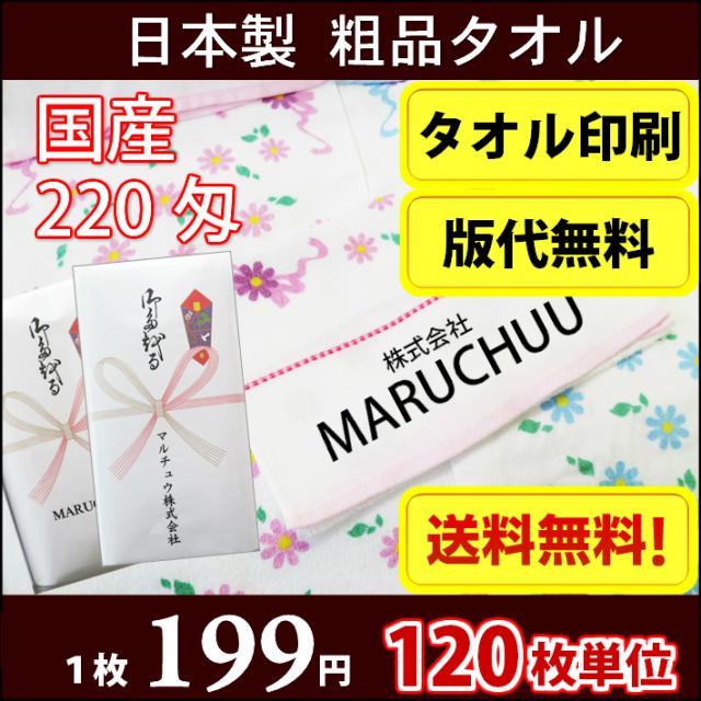 【送料無料】 タオル 名入れタオル 国産 日本製 泉州花柄タオル220匁平地 カラータオル のし印刷 タオル印刷 粗品タオル お年賀タオル 120枚単位
