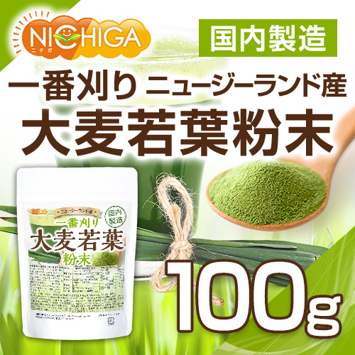 一番刈り 大麦若葉 粉末(ニュージーランド産) 100g 【メール便専用品】【送料無料】 食物繊維豊富 残留農薬検査実施済 [04] NICHIGA(ニチガ) 保存料不使用・着色料不使用・香料不使用