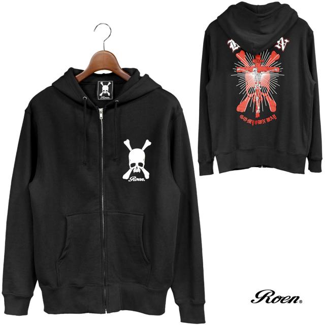 Roen ロエン ジップアップパーカー スカル スケルトン クロス メンズ 長袖 ライトアウター(ブラック黒) 52047005