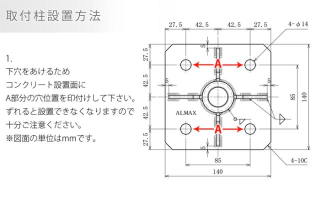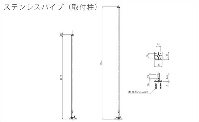 アルミゲート用オプション ステンレスパイプ(取付柱)2.0m アルマックス 時間指定不可 代引不可 太陽光発電