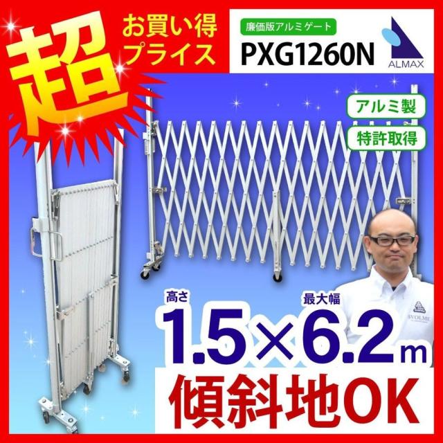 門扉 フェンス アルミゲート PXG1260N W6.2m×H1.50m アルマックス キャスターゲート 伸縮門扉 アコーディオン門扉 太陽光発電
