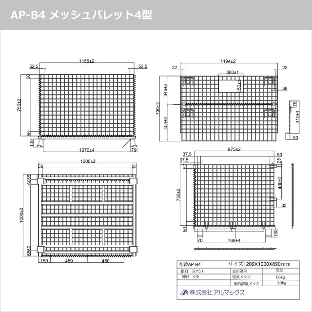 ALMAX アルマックス メッシュパレット 4型 ドブメッキ(半開タイプ) L1000×W1200×H890mm 網目ピッチ50×50mm サビや腐食に強いドブメッキ仕上げ【車上渡し/代引き不可/個人宅配達不可】