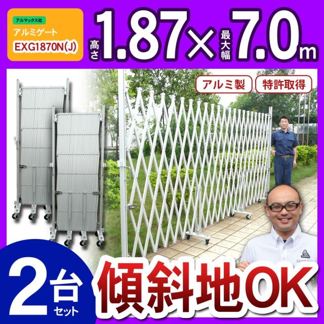 門扉 フェンス アルミゲート EXG1870N(J) 両開き 2台セット キャスターゲート 伸縮門扉 アコーディオン門扉 太陽光発電