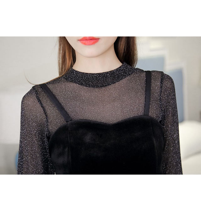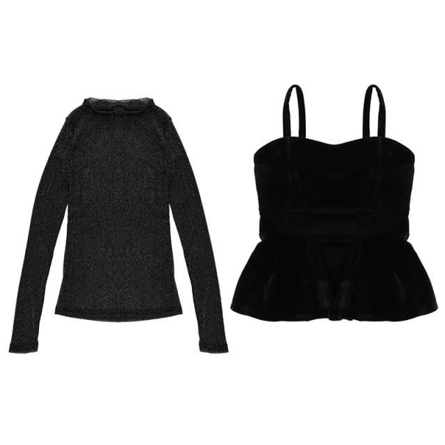 シースルー フリル トップス ペプラム ビスチェ セットアップ 長袖 クルーネック カジュアル きれいめ 大人可愛い 春秋冬 レディース