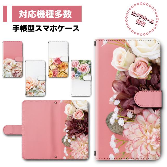 スマホ ケース カバー 手帳型 多機種対応 LGV36 OPPO Google Pixel 送料無料 花柄 フラワー ブーケ ブライダル / dc-398
