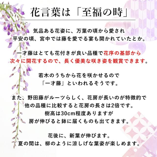 一才藤の盆栽 5号鉢 藤 藤の花 フジ 花 ギフト 誕生日 プレゼント 女性 祖父 還暦 古希 喜寿 傘寿 花 お祝い フラワーギフト 男性 盆栽 花鉢 鉢植え お礼 上司 恩師 実家 玄関 夫 妻 父 母 両親 結婚記念日 2/1〜3/22の間で配達日指定OK