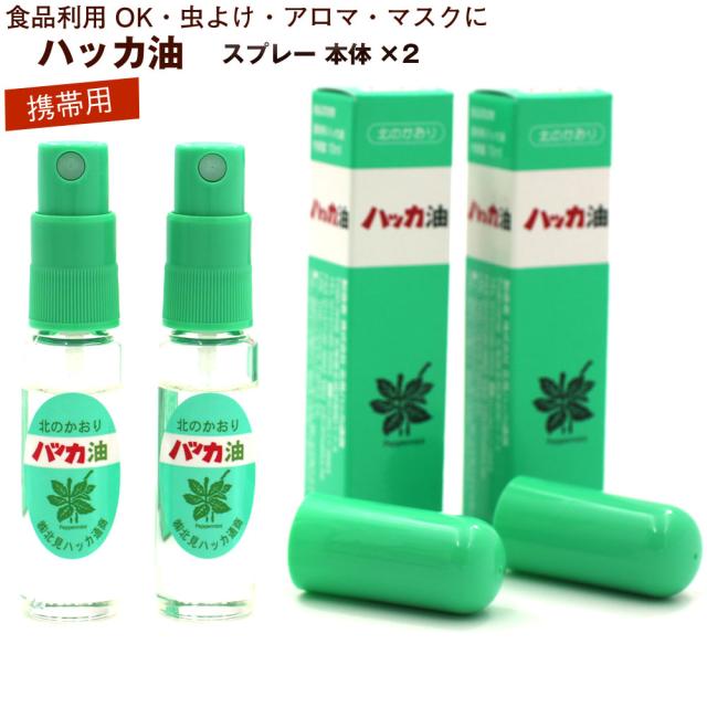 ハッカ油 (E) ハッカ油 スプレー 本体×2本 (11.5ml×2本) 北海道 ハッカ油 北見 ハッカ油スプレー 国産 虫よけ アウトドア 食品に利用可 アロマ ミント hakka メール便送料無料 マスクスプレーに