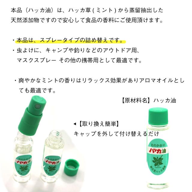 ハッカ油 ハッカ油 スプレー用 詰め替え(本体無し) 11.5ml×4本 (E) 北海道 ハッカ油 北見 ハッカ油スプレー 国産 虫よけ アウトドア アロマ ミント メール便 送料無料 マスクスプレーに