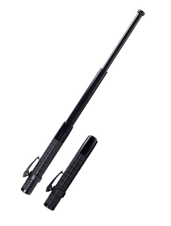 長さ 最大:約53.34 cm 最小:約20.64cm 重量 約217g 材質 4140ハイカーボン鋼/7075T6アルミ合金 表面加工 ブラッククローム グリップパターン クロスハッチパターン 〜店長推薦〜 ポケットにも忍ばせる小型警棒です。