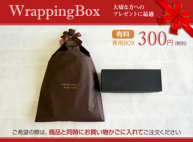 | 注意事項 | ・こちらの有料ラッピングBOXは、 ◆三角ペンケース、L字ファスナーペンケース、ロールペンケース のみ対応です。 ・1箱300円(税別)です。 ・必ず商品と同時にお買い物かごへ入れていただきご注文ください。 ・ラッピングBOXのみの販売はできません。 ・化粧箱内は、不織布に商品を包んでいます。 ・化粧箱は、包装袋にリボンでラッピングしております。 ・1箱につき、1商品のみの包装となります。 ・1箱に複数個の商品は入りません。 ・配送は宅配便となります ・商品を贈る方へ直接送られる場合は、納品書の同封を無しと備考欄に記載ください。 ・ご注文者様と送付先が違う場合のラッピングは、納品書の同封をせずに配送しております。 ※ラッピング箱・包装袋・リボンは色が変わることがあります。 |