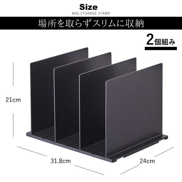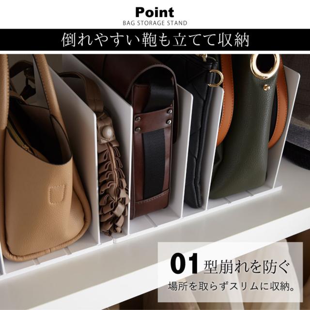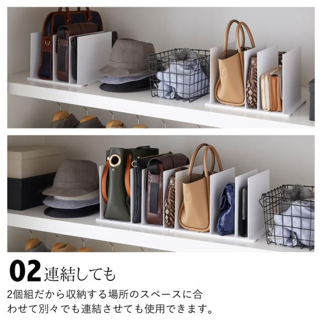 鞄のサイズに合わせて仕切り幅を調整することもでき、立てて収納することで大切なバッグの型崩れも防ぎます。