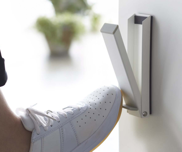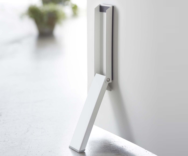 ドアストッパーを戻す時も片足でラクラク収納出来ます。折り畳むとスリムになり邪魔になりません。