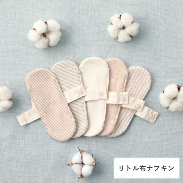 メイド・イン・アースのリトル布ナプキンは、素材、リボンテープ、縫い糸、吸収体、すべて純オーガニックコットン100%。生地の間には吸収力のあるパイル生地を1枚入れています。太めのリボンテープでズレにくい設計です。 | ラインナップ