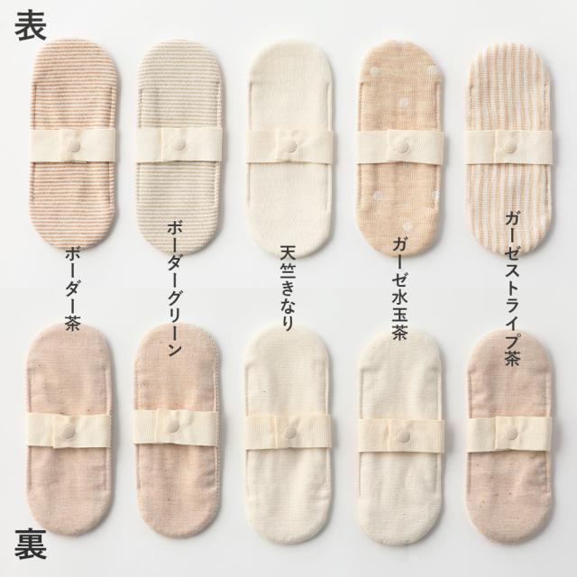 MADE IN EARTH.(メイドインアース) リトル布ナプキン ボーダー茶 / ボーダーグリーン / 天竺きなり / ガーゼ水玉茶 / ガーゼストライプ茶 | 布ナプ パッド オーガニックコットン おりもの ts1031