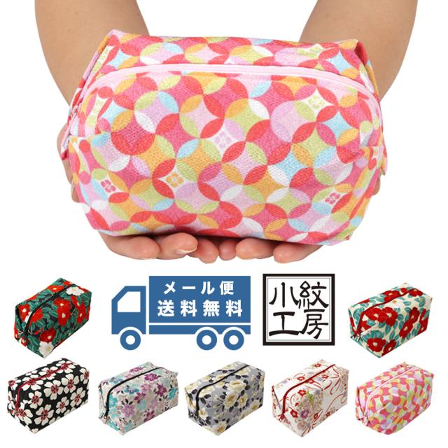 【メール便送料無料】特大風船ポーチ トラベルポーチ コスメポーチ 大きめ 大容量 和KOMONO 小紋工房 二越ちりめん 縮緬 日本製 和柄 和小物 和雑貨 メイドインジャパン 国産 レディース