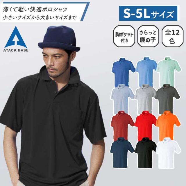 作業服 ポロシャツ 半袖 春夏 02-15 5L 大きいサイズ 胸ポケット カジュアル ビズポロ 鹿の子 アタックベース