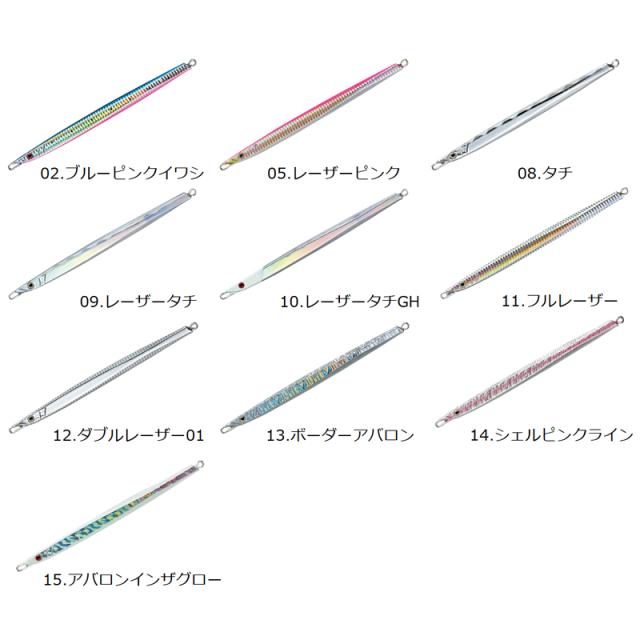 ●基本操作はワンピッチジャークが最も有効で、ハリのあるロッドを使用する事により早い潮流や水深のある場所でもスライドアクションが付けやすいジグです。また、電動リールを使用したジギングにも対応します。