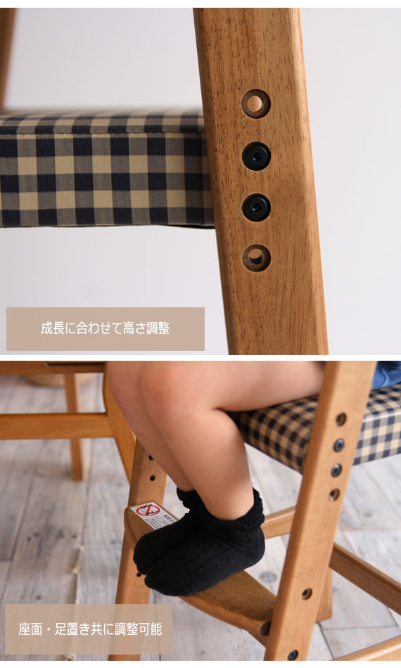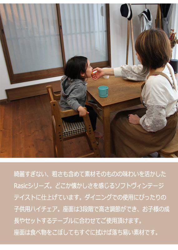 RASIC ラシック キッズチェア (椅子 イス 子供用 キッズ 高さ調整 チェック 木製 シンプル 食卓 天然木 北欧 カントリー ヴィンテージ グリーン ブラウン レトロ カジュアル おしゃれ おすすめ)