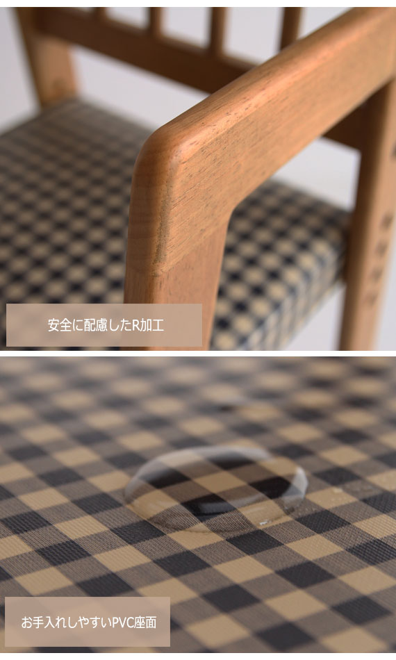 座面は食べ物をこぼしてもすぐに拭けば落ち易い素材です。