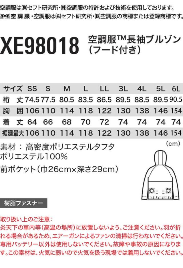 [激安セール][在庫限り][送料無料]空調服 ジーベック XEBEC アノラックパーカー 空調服長袖ブルゾン(ファンなし) XE98018A(旧モデル)