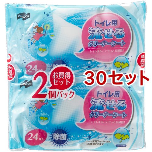 コンドル トイレ用流せるクリーナーシート(24枚入*2個パック*30セット)[トイレ用掃除シート]