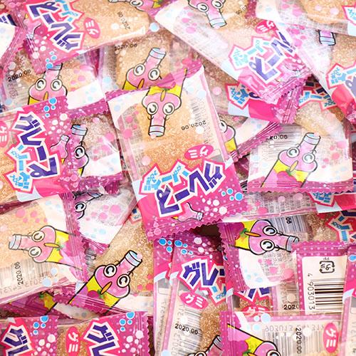 酸味の効いたボトル型のグレープソーダ味のグミです。すっきりした爽やかな味が人気の秘密です。