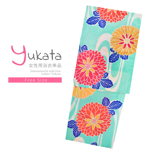 浴衣 レディース 単品「ミントグリーン ジニア」フリーサイズ レトロ モダン 大人柄 女性浴衣単品 女浴衣 ゆかた yukata 【メール便不可】