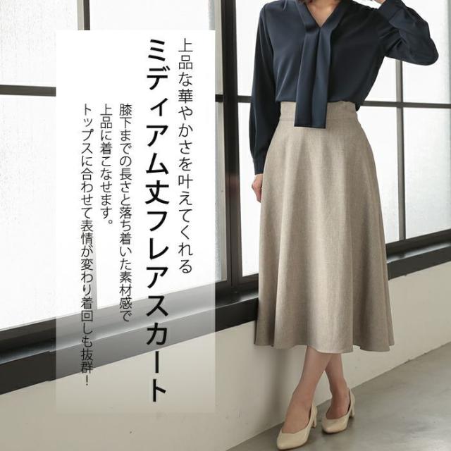 上品な華やかさを叶えてくれるミディアム丈フレアスカート。