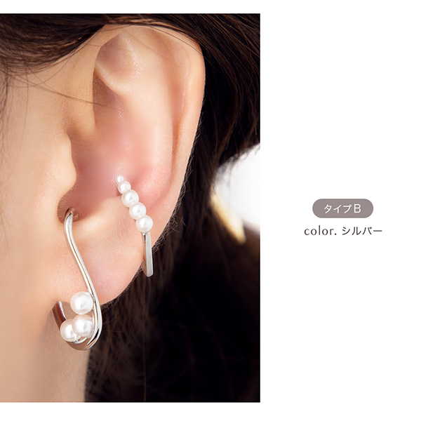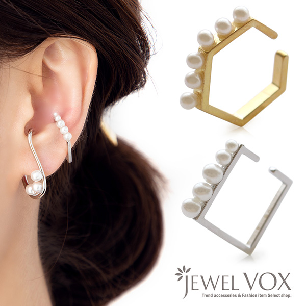 イヤリング イヤーカフ 片耳用 金属アレルギー対応 ノンホールピアス レディース パール メタル スクエア 六角形 ワンポイント ゴールド シルバー イヤークリップ ニッケルフリー メタル 重ね着け 重ね付け 重ねづけ 30代 40代 50代