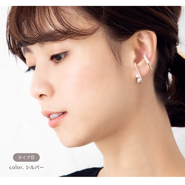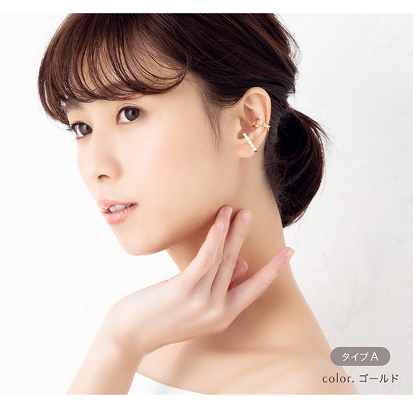 耳の軟骨部分に引っ掛けるだけの簡単でストレスフリーなウェアリング(イヤーカフ)です。
