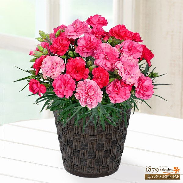 濃いピンクから淡いピンクへと、花の色が変化していく珍しいカーネーションの鉢植えです。1つの鉢でバリエーション豊かなピンク色をお楽しみいただけます。【※植物の花つき、花の色、枝ぶりなどは写真と若干異なることがありますのでご了承ください。つぼみが多い状態でのお届けとなります。】【※この商品は、離島などの一部の地域へのお届けはできません。】