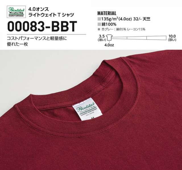 半袖 tシャツ メンズ 無地 Printstar プリントスター 4.0オンス ライトウエイト Tシャツ 夏 ユニフォーム イベント お揃い 00083 【00083-BBT】 送料無料 通販M1