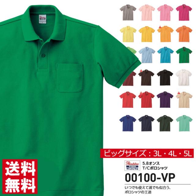 半袖 ポロシャツ メンズ Printstar プリントスター 5.8オンス ポケット付き ポロシャツ 大きいサイズ スポーツ ゴルフ ビズポロ ユニフォーム 00100 【00100-VP】 送料無料 通販M2