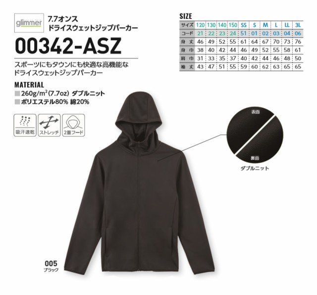 無地 パーカー メンズ 長袖 glimmer グリマー 7.7オンス ドライ スウェット ジップパーカー スエット 上 スポーツ アウトドア ユニフォーム 吸汗 速乾 00342 【00342-ASZ】 送料無料 通販A3