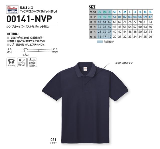 半袖 ポロシャツ メンズ Printstar プリントスター 5.8オンス TC ポロシャツ 大きいサイズ スポーツ ゴルフ ビズポロ イベント ユニフォーム 00141 【00141-NVP】 送料無料 通販M2