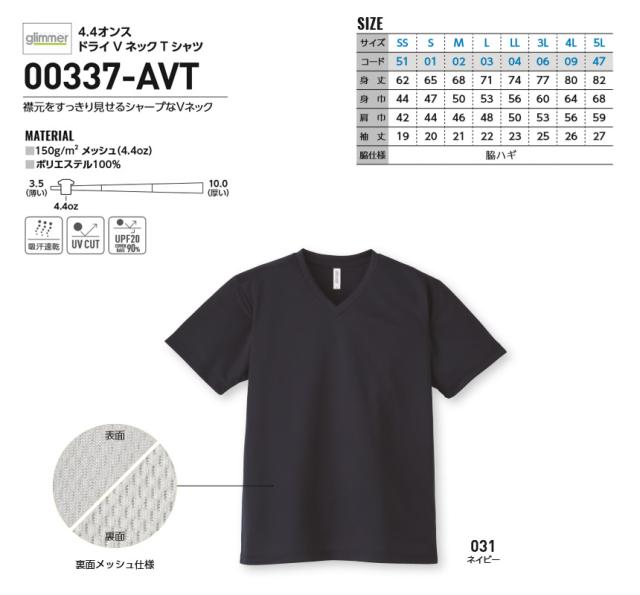 無地 半袖 tシャツ メンズ glimmer グリマー 4.4オンス ドライ Vネック Tシャツ 吸汗 速乾 スポーツ 運動会 ユニフォーム 大きいサイズ 00337 【00337-AVT】 送料無料 通販A15