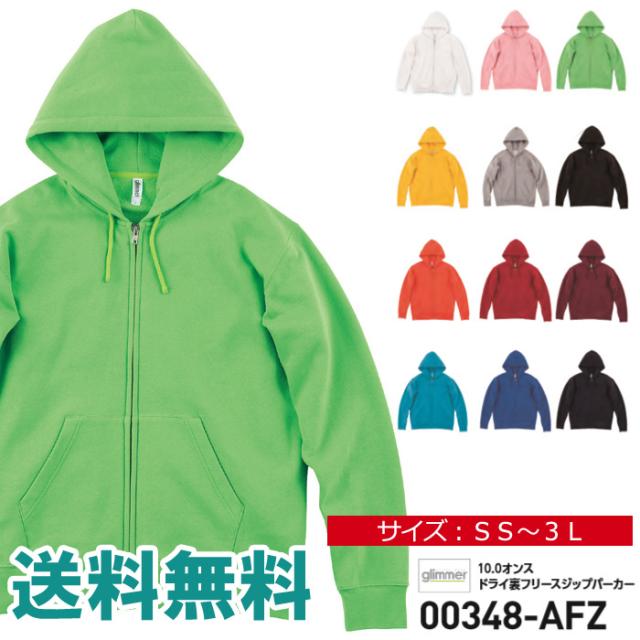 パーカー 無地 メンズ 長袖 00348-AFZ glimmer グリマー 10.0オンス ドライ 裏フリース ジップパーカー スウェット 上 スエット ユニフォーム 速乾 暖か 【00348-AFZ】 送料無料