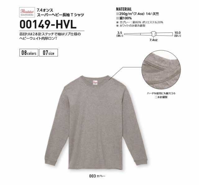 Printstar プリントスター 7.4オンス スーパーヘビーウエイト 長袖Tシャツ メンズ レディース ロンT 無地 ユニフォーム チームtシャツ【00149-HVL】送料無料 通販A15
