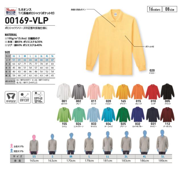 長袖 ポロシャツ メンズ 大きいサイズ 無地 Printstar プリントスター 5.8オンス TC 長袖ポロシャツ ビズポロ ユニフォーム 00169 【00169-VLP】 送料無料 通販M3