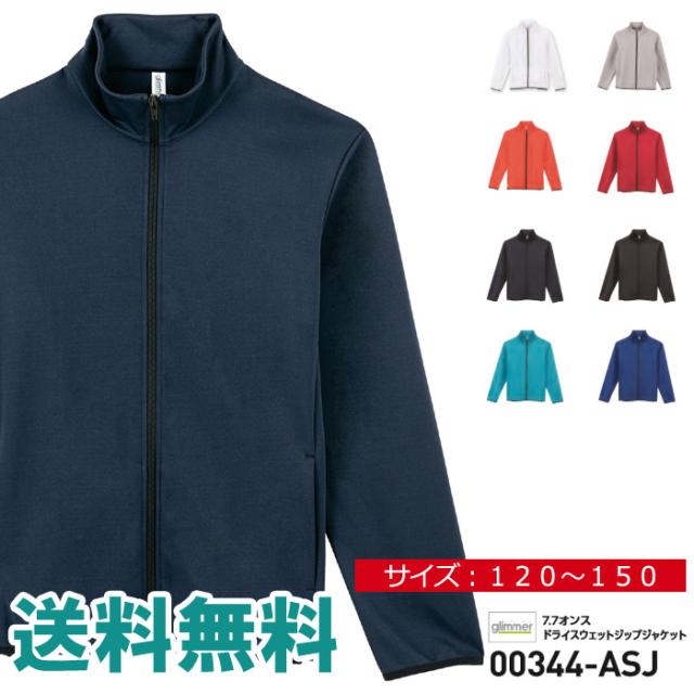 キッズ ジュニアサイズ 長袖 glimmer グリマー 7.7オンス ドライ スウェット ジップジャケット 無地 スポーツ アウトドア ユニフォーム 吸汗 速乾 00344 【00344-ASJ】 送料無料 通販A3
